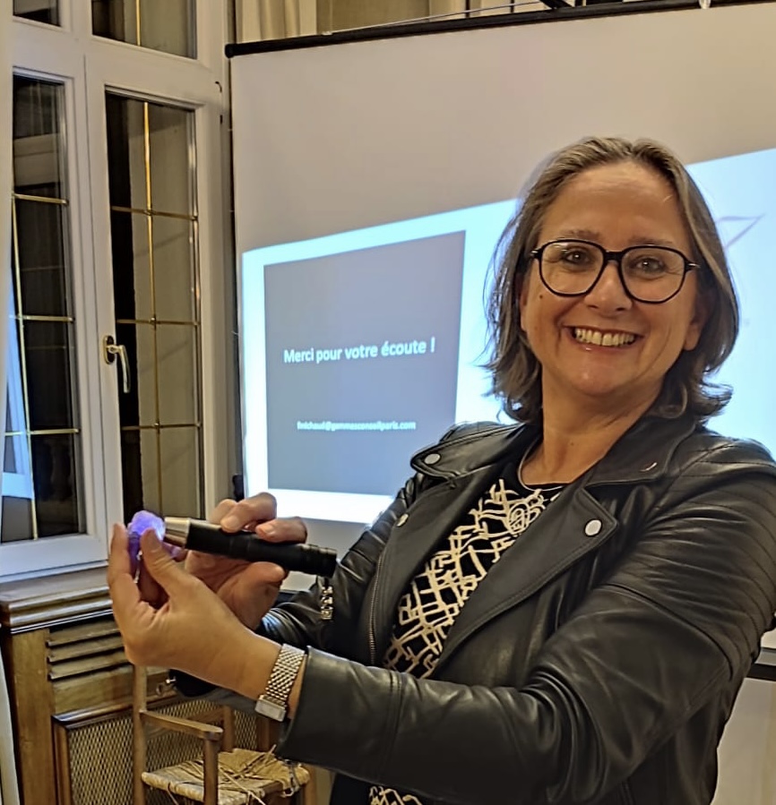 Elle a donc décidé de reprendre ses études à plus de 50 ans. Elle obtient, en 2020, son diplôme international de gemmologue FGA (Fellow of the Gemmological Association of Great Britain).