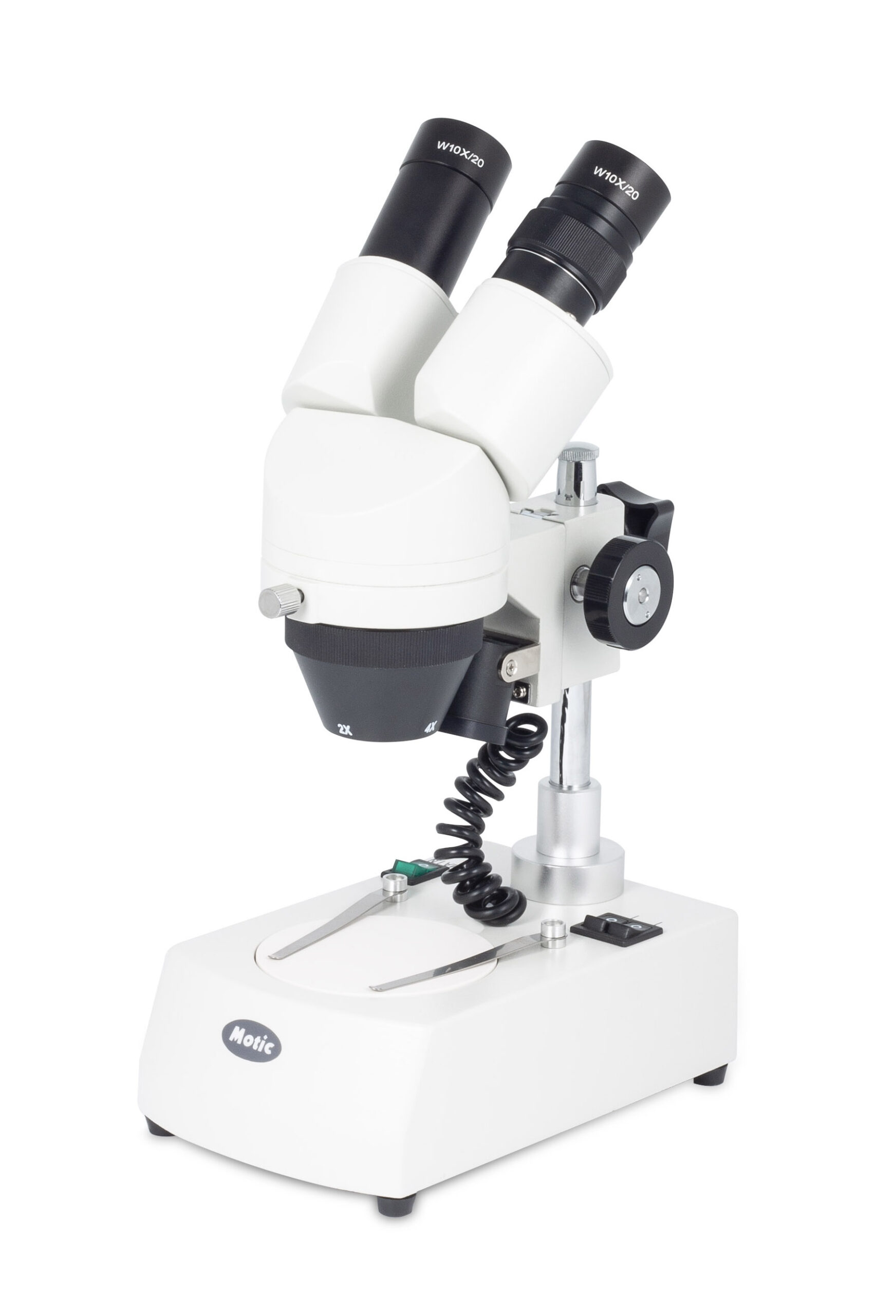 Un petit microscope stéréo pour les travaux microscopiques de base. Le changeur de grossissement fournit des images claires d’échantillons biologiques avec un grossissement total de 20X/40X pour les écoles et les amateurs. Le tube oculaire est rotatif à 360°. L’éclairage LED transmis/incident intégré permet de commencer immédiatement le travail.